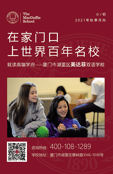 2021年秋季開學,屆時將為廈門學子帶來純正雙語教學服務,來自全球教育界有名望、教學經(jīng)驗豐富的師資隊伍和小班精品化教育模式。