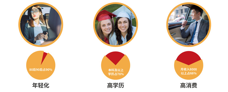 網(wǎng)約車的受眾人群呈現(xiàn)年輕化/高收入/高學(xué)歷的特點(diǎn),與70%以上廣告主的目標(biāo)客戶群體高度吻合,屬于金字塔尖的消費(fèi)人群。