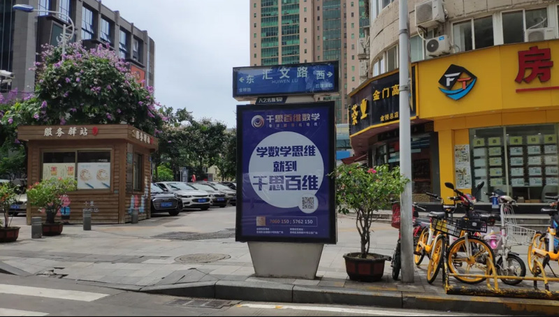 廈門千思百維教育聯袂天藝傳媒公司在廈門市各大重點路段針對性投放路名牌廣告。