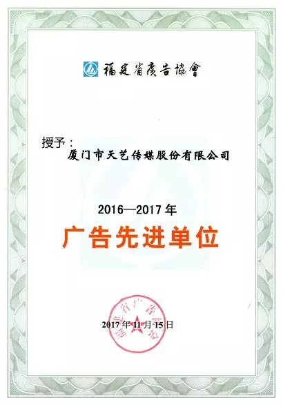 日前,在國(guó)家工商行政管理總局辦公廳出臺(tái)的《關(guān)于進(jìn)一步推進(jìn)廣告業(yè)創(chuàng)新創(chuàng)業(yè)有關(guān)工作的通知》(辦字【2017】209)中,由廈門(mén)市天藝傳媒股份有限公司創(chuàng)辦的“天藝文創(chuàng)孵化基地”被評(píng)定為國(guó)家級(jí)廣告業(yè)創(chuàng)新創(chuàng)業(yè)示范基地,成為廈門(mén)市2017年度唯一一家獲評(píng)廣告業(yè)創(chuàng)新發(fā)展優(yōu)秀典型企業(yè)的單位。