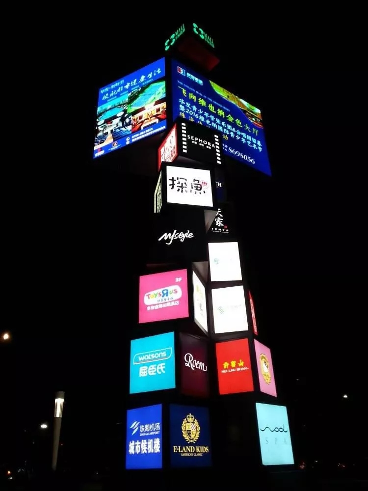 是戶外廣告比較新穎的表現(xiàn)形式,常見于現(xiàn)代都市。用電腦控制,將廣告圖文或電視廣告片輸入程序,輪番地在畫面上顯示色彩紛呈的圖形與文字,能在較短的時間里展示多個不同廠家、不同牌號的商品,具有動感、多變、新穎別致、反復(fù)播放等特點,能引起受眾的極大興趣。