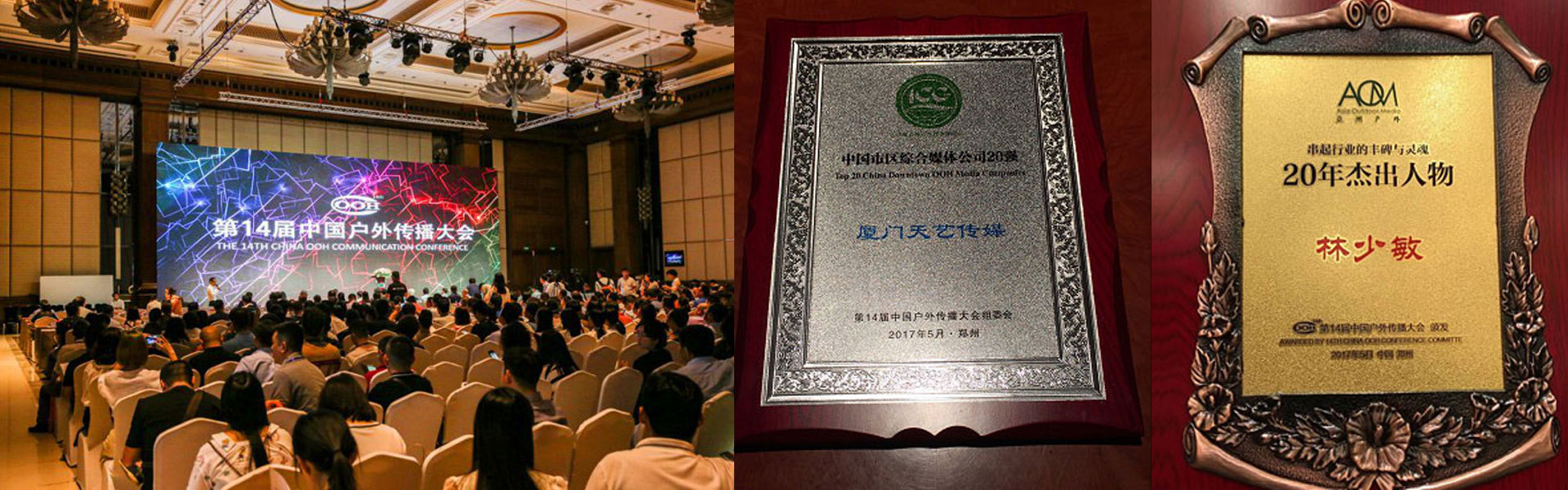 在剛剛落幕的第14屆中國戶外傳播大會上,廈門天藝傳媒有限公司憑借20余年的媒體經(jīng)營實(shí)力、誠信可靠的行業(yè)口碑及強(qiáng)大的市場占有率,在第六屆中國百強(qiáng)媒體評選中,從眾多優(yōu)質(zhì)候選